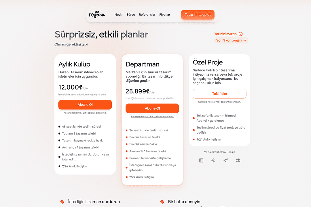 Reflow, e-ticaret markaları ve startuplar için tasarladığımız Türkiye'nin ilk tasarım abonelik platformlarından biridir.