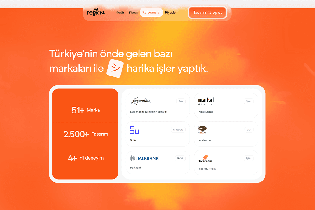 reflow, yayına girdiği günden bu yana Türkiye'nin önde gelen markalarına hizmet vererek tasarım abonelik modelini başarıyla kanıtladı.